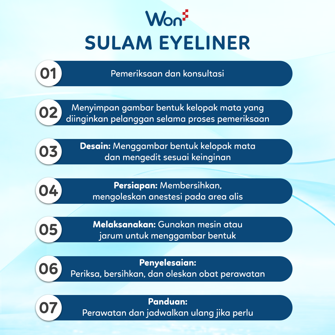 • Spesialis di Klinik Won memiliki pengalaman bertahun-tahun dan terlatih dengan baik, memastikan untuk memberikan eyeliner yang halus dan tajam yang cocok untuk setiap bentuk mata.